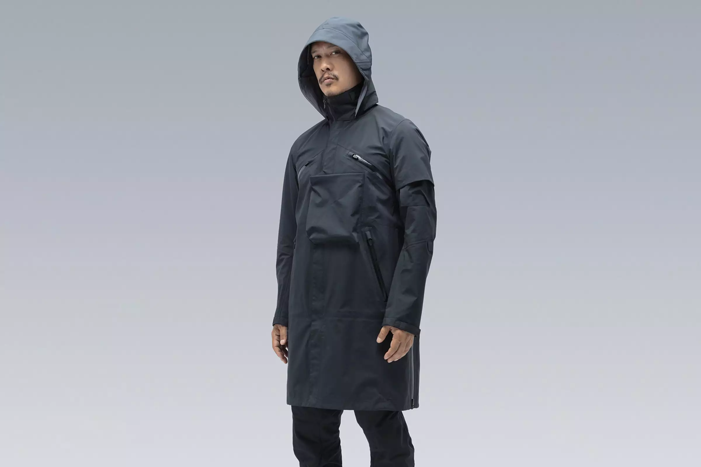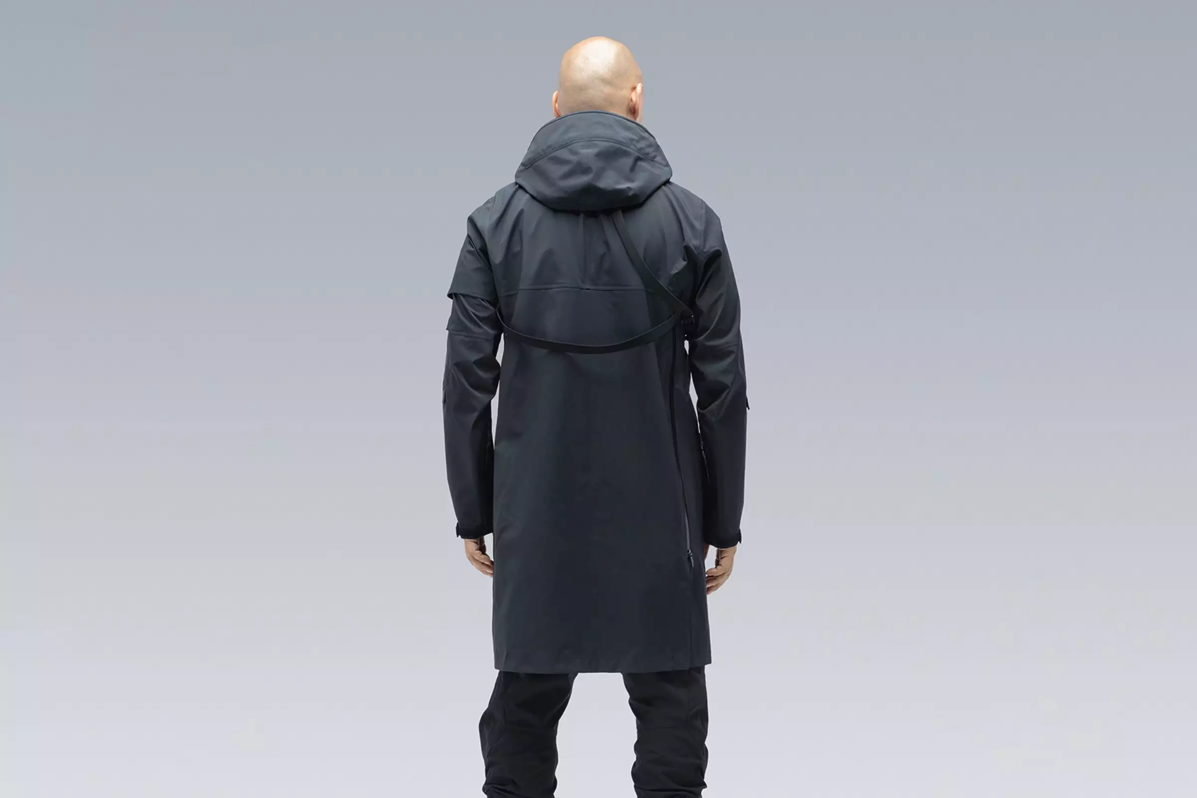 The Acronym J1L-GT 3L Gore-Tex® Pro Interlops Jacket is the long form extended play of the J1A jacket and is the culmination of everything Acronym have learned about building apparel since the original jacket was conceived between ’99 and ’01. This new Gen 2.2 features include multi-position convertible storm collar, storm hood with redesigned visor/circumference adjustment, repositioned and resized GravityPockets, elongated liner access zip, addition of manubrium height center front snap closure, reintroduction of sleeve hitch tabs.