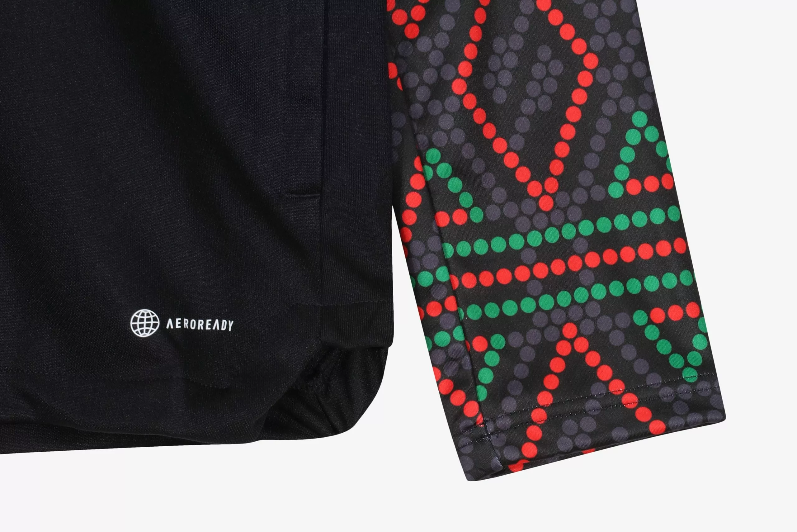 Part of a collaboration between adidas and Amsterdam fashion brand Daily Paper, this Ajax Amsterdam track jacket borrows the colours of the Pan-African flag. Subtle details on the lower sleeves and an embroidered badge complete the eye-catching look. Moisture-absorbing AEROREADY ensures it feels pretty good whenever you wear it.