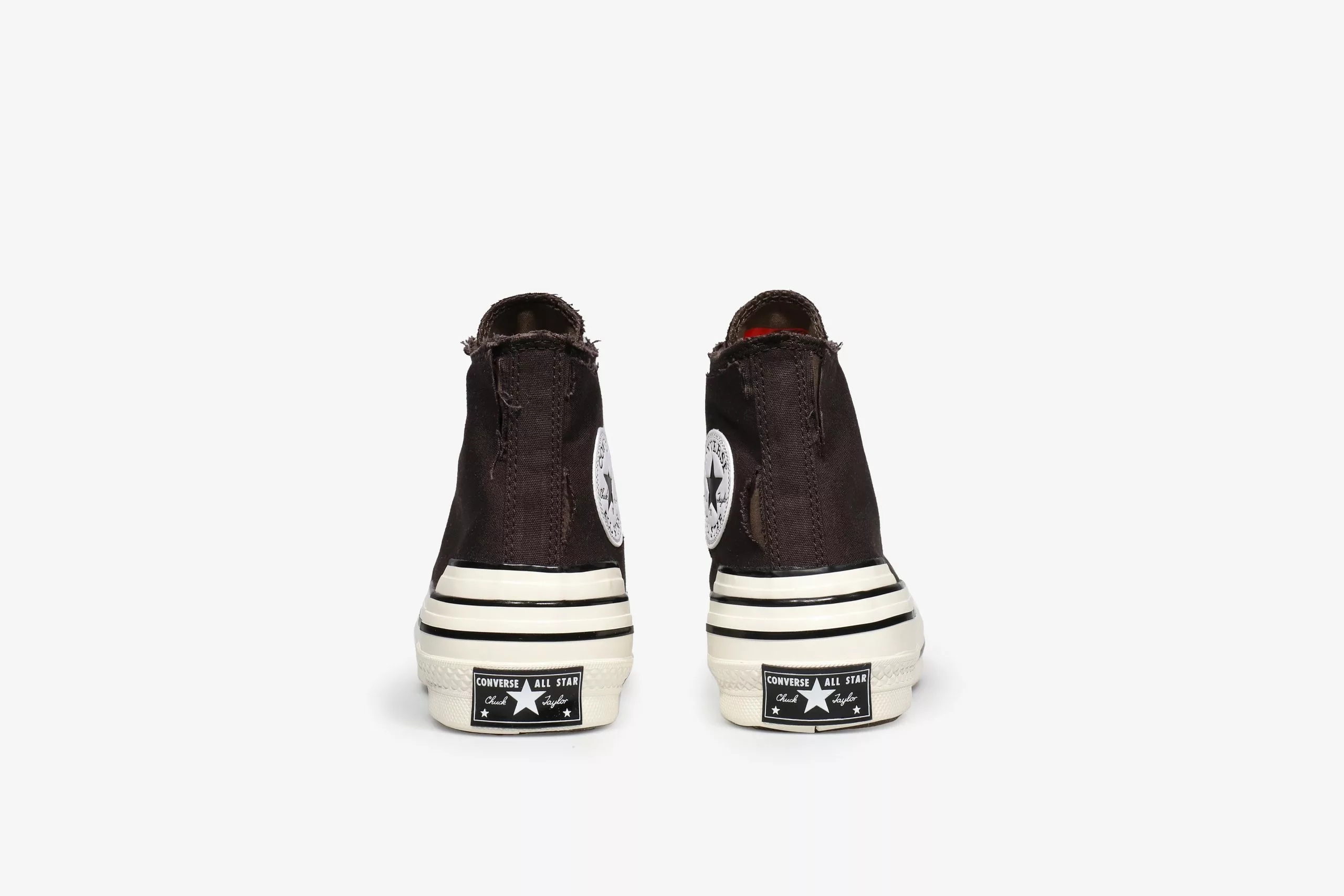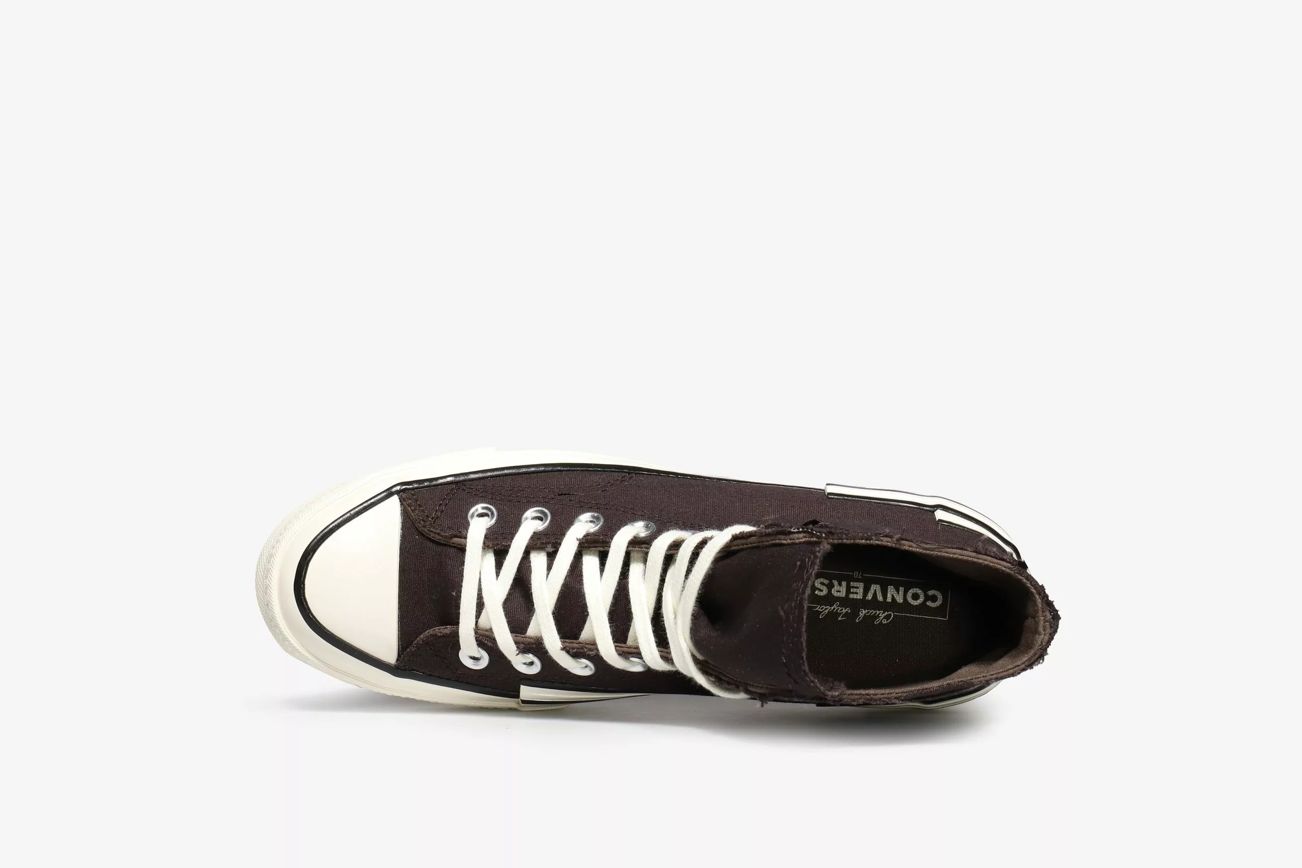 This Converse Chuck 70 Hi lets you customise at will thanks to its tear away cotton canvas upper with a brown canvas upper below that is revealed with every rip. Below foot a cushioned OrthoLite insole keeps comfort at maximum all day long. Multi layered foxing tape at the heel supplies a unique look that stands out from the rest.Â