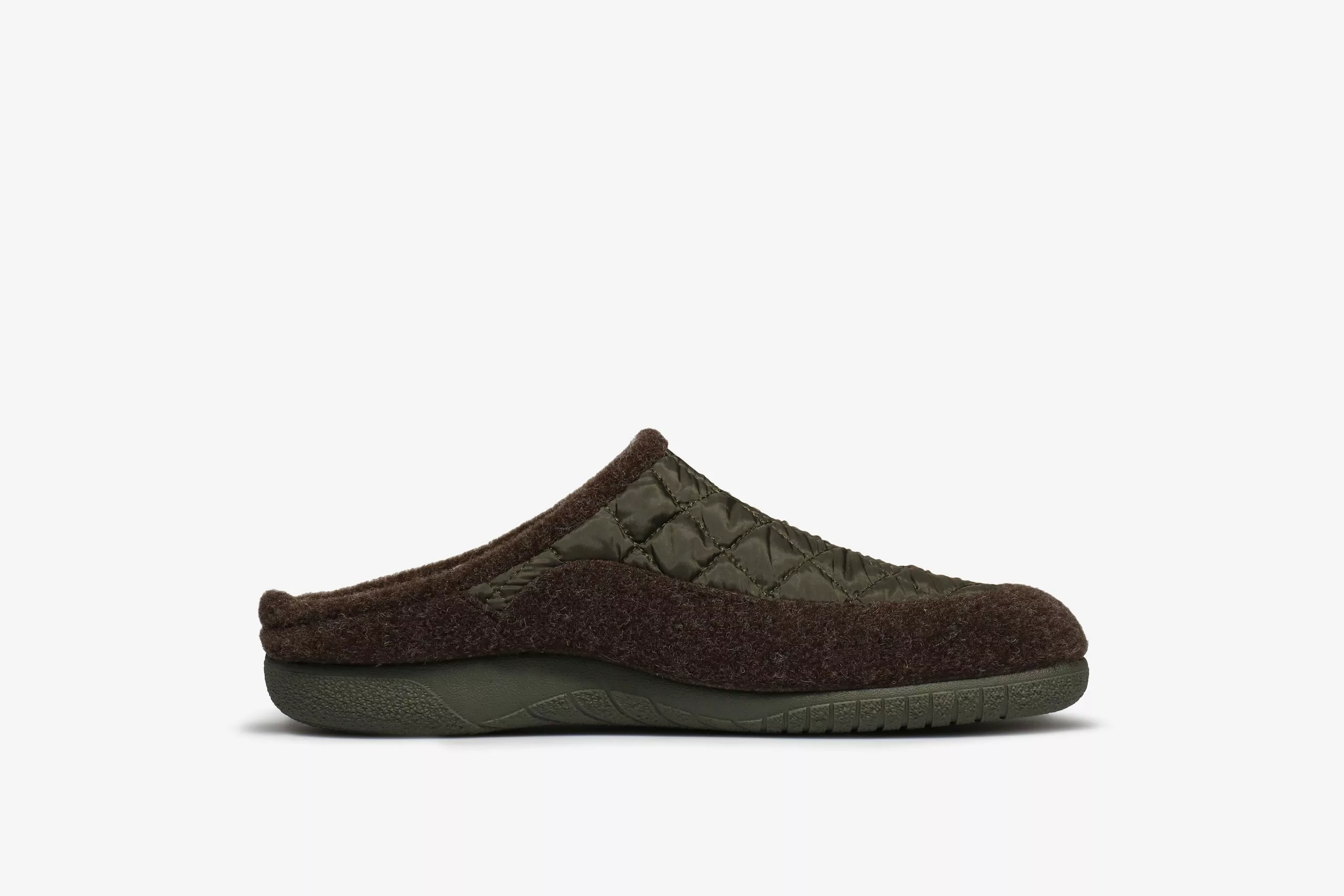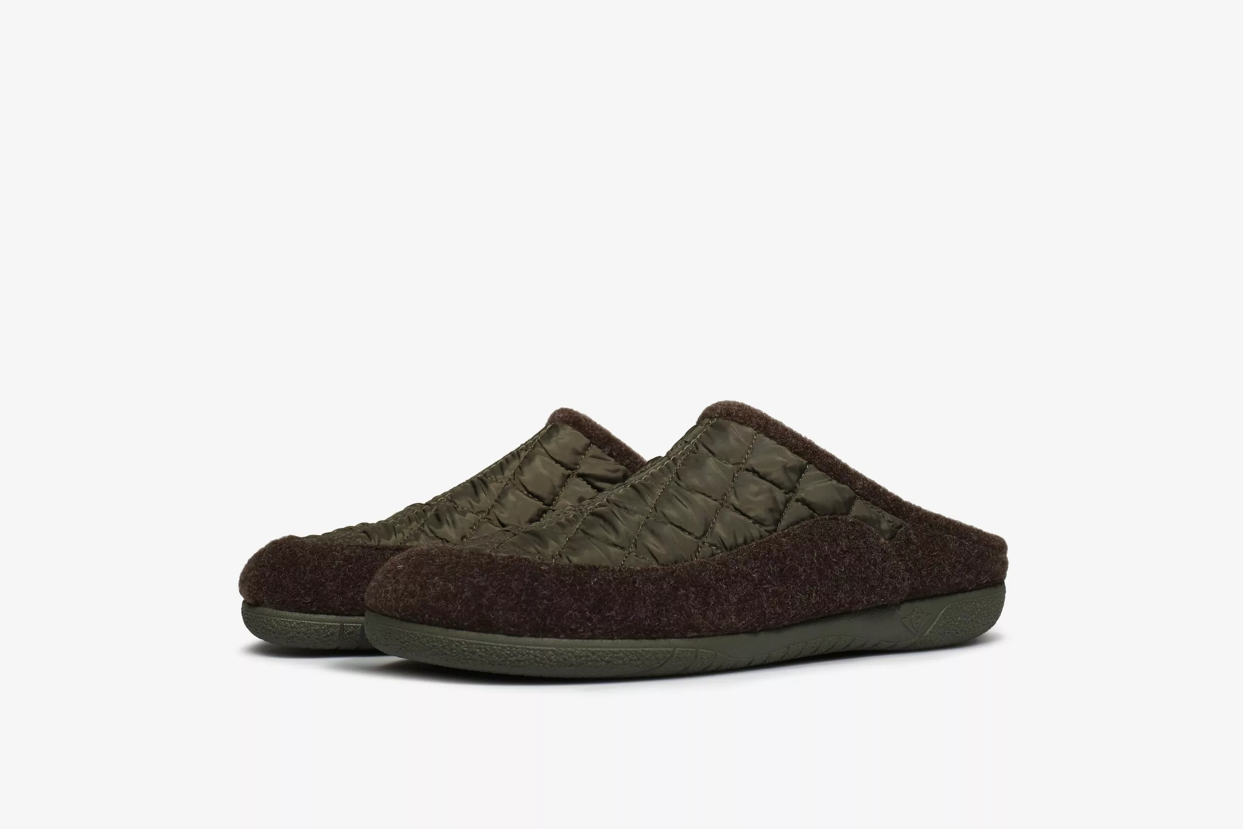 Back at HANON for AW22, Gurus return dropping knowledge in the art of relaxation, teaching us all how to live comfortably. Utilising some pretty new-age thinking and the fair skilled hands of Spanish craftspeople. Constructed in Espania from recycled felt wool, rubber, quilted nylon as well as boasting a soft warming fleece lining. Stick these on and let the serenity wash over you…Dos Kombucha por favor!