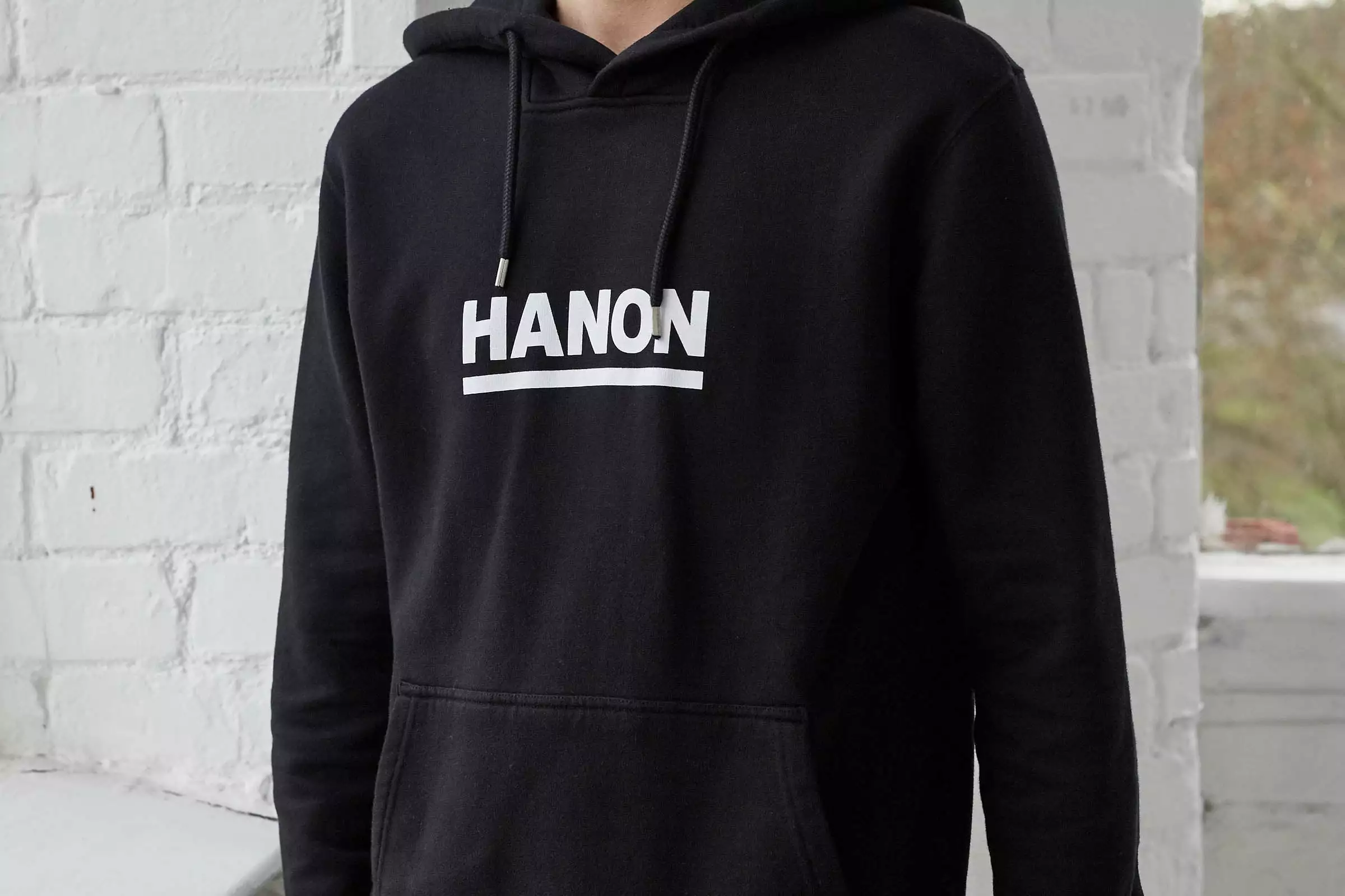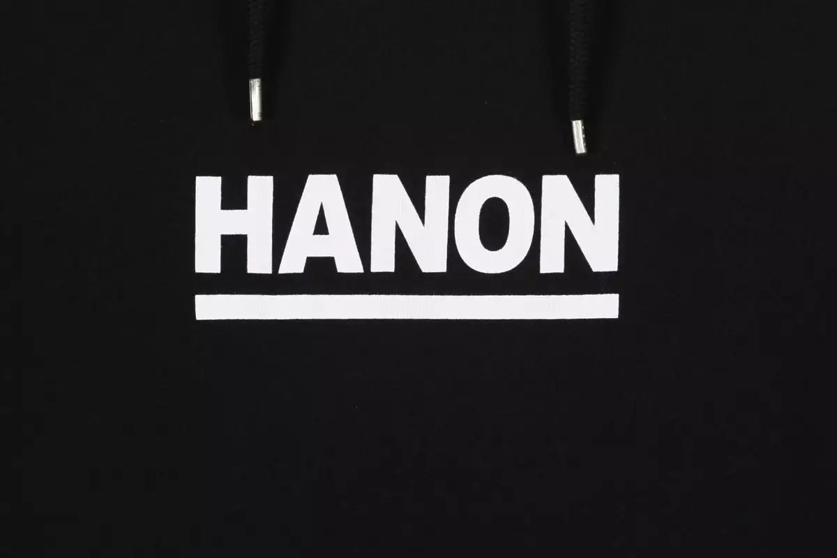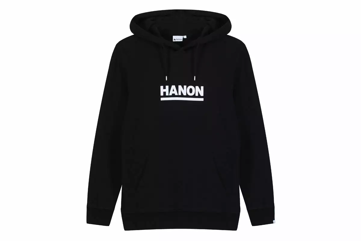 Crafted in Portugal from premium 100% brushed cotton, this Hooded Sweat features Hanon printed bar logo. Concealed phone pocket in kangaroo pouch.