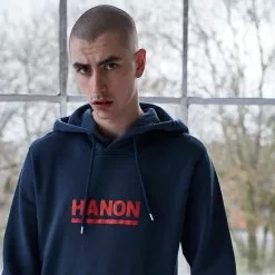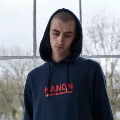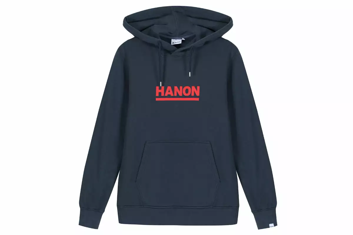 Crafted in Portugal from premium 100% brushed cotton, this Hooded Sweat features Hanon printed bar logo. Concealed phone pocket in kangaroo pouch.