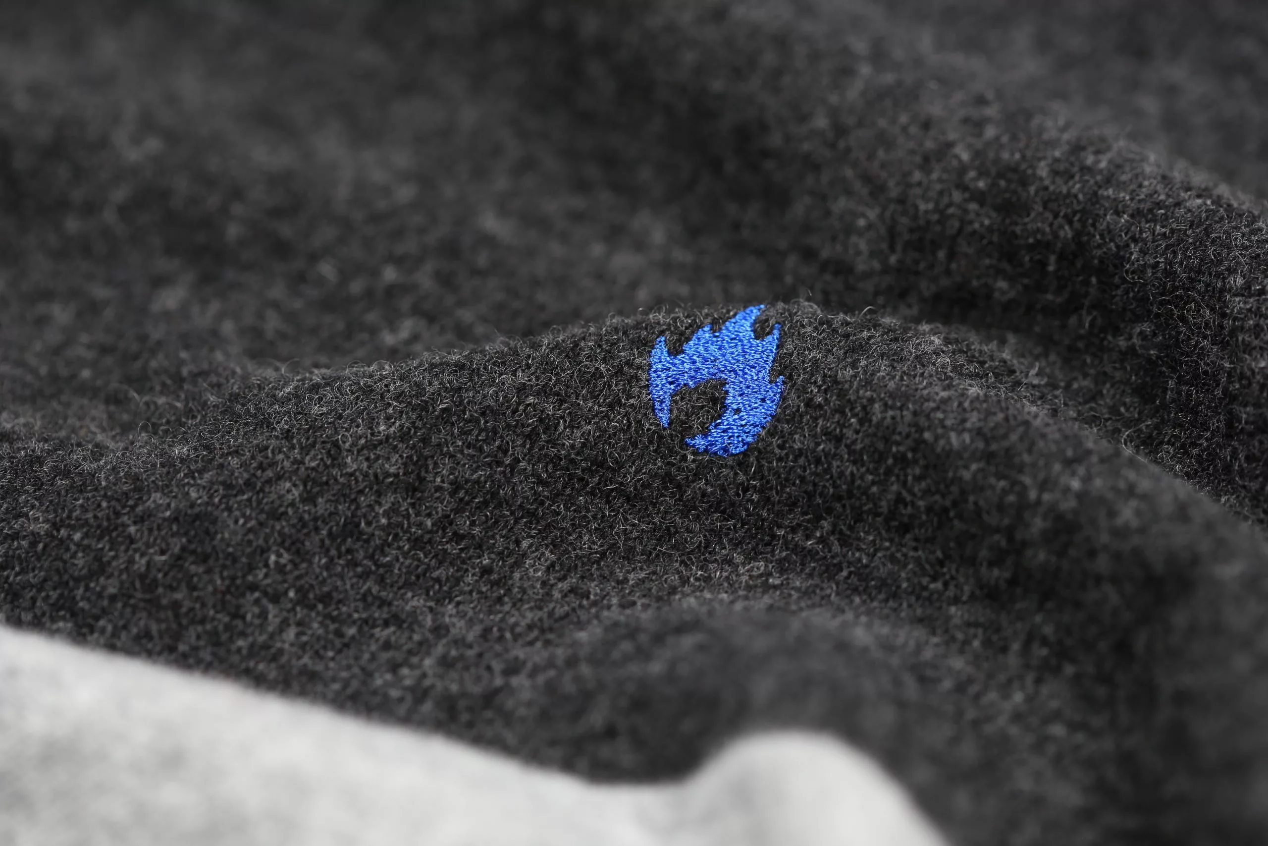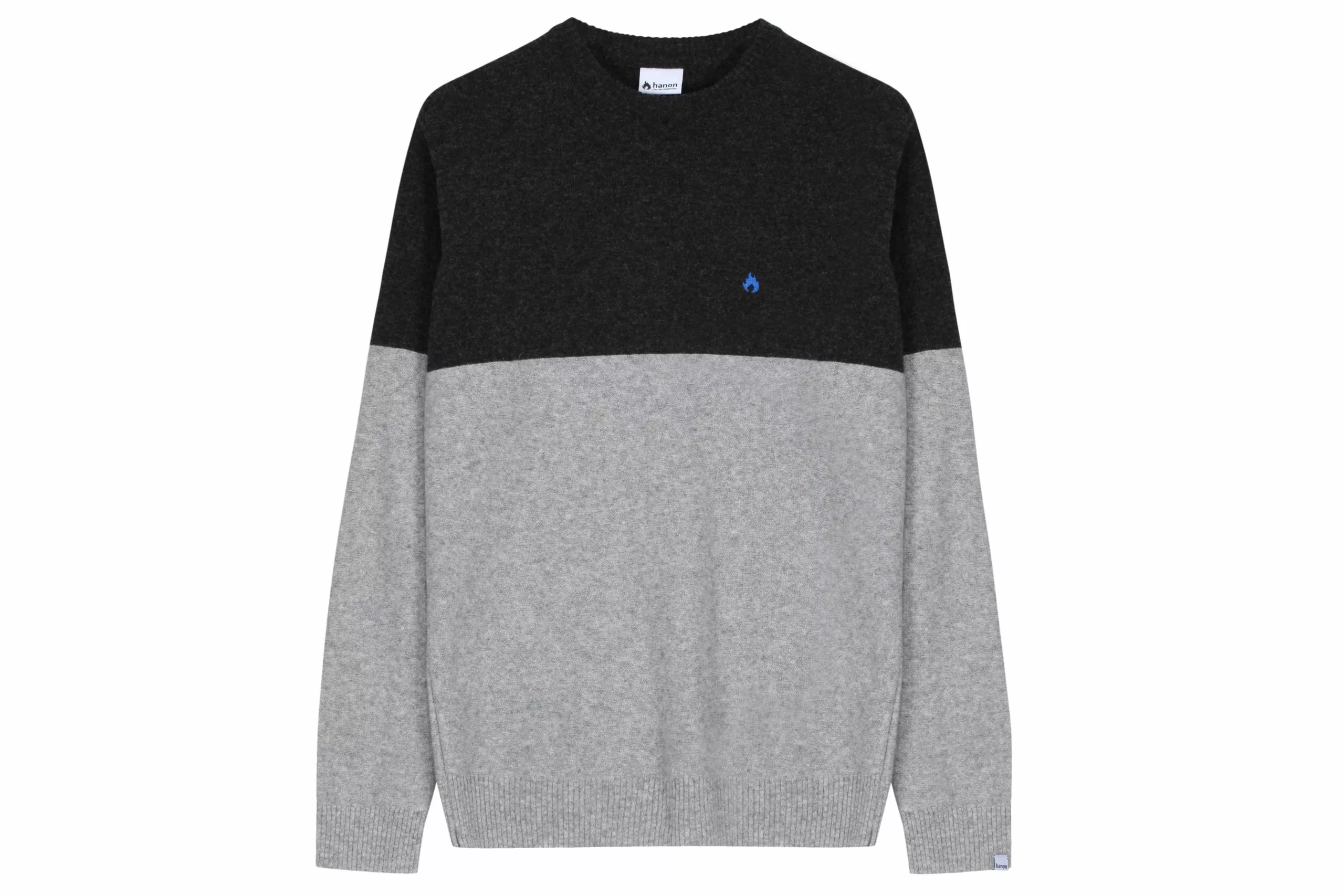 The HANON Blocked Wool Knit inĀ “Dark Grey Melange” isĀ made in Portugal from soft Italian wool featuring an embroidered chest flame logo, ribbedĀ neck, sleeves and hemline. A woven HANON clip label on the sleeveĀ signs things off.