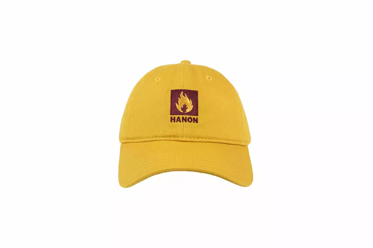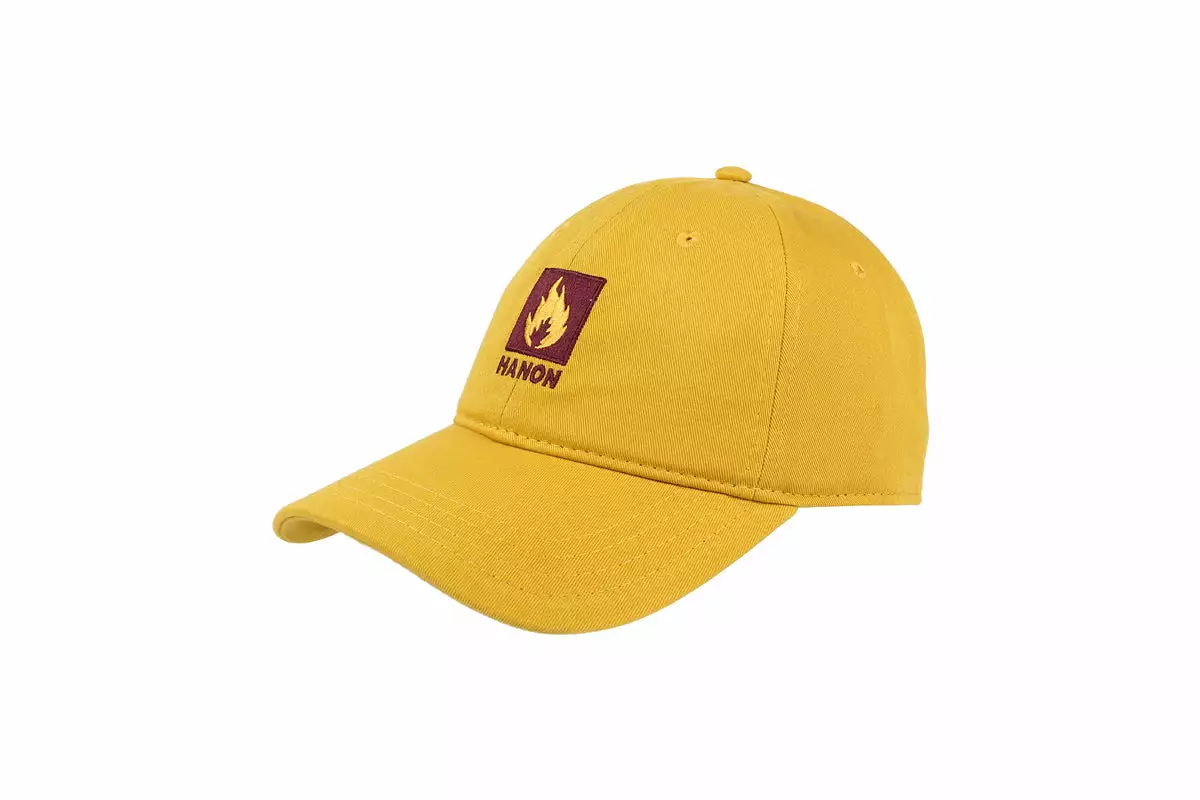 HANON Box Logo 6 Panel Adjustable Cap arrives with Flame Box embroidered branding to the front with embroidered HANON text on the rear with a peaked brim.