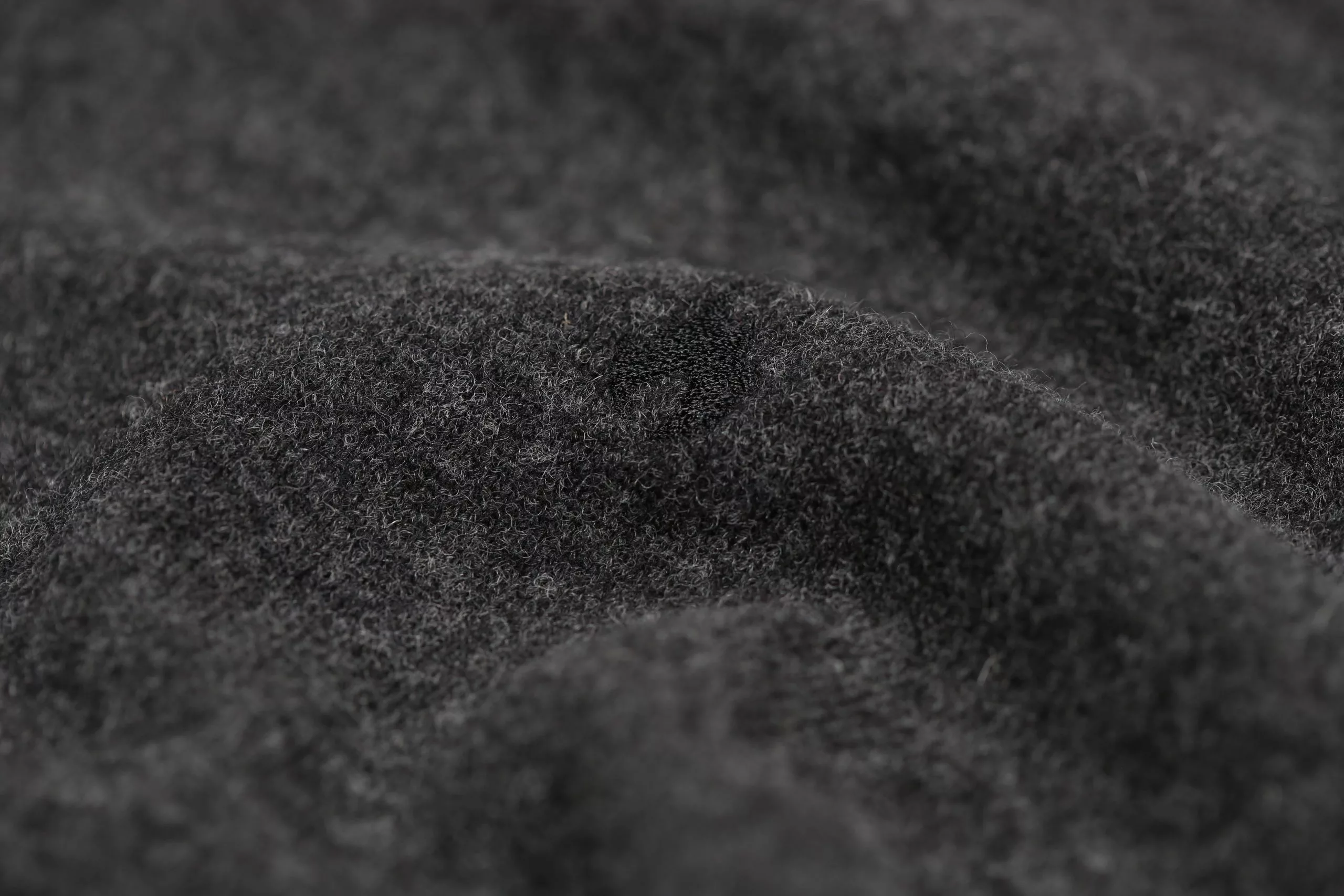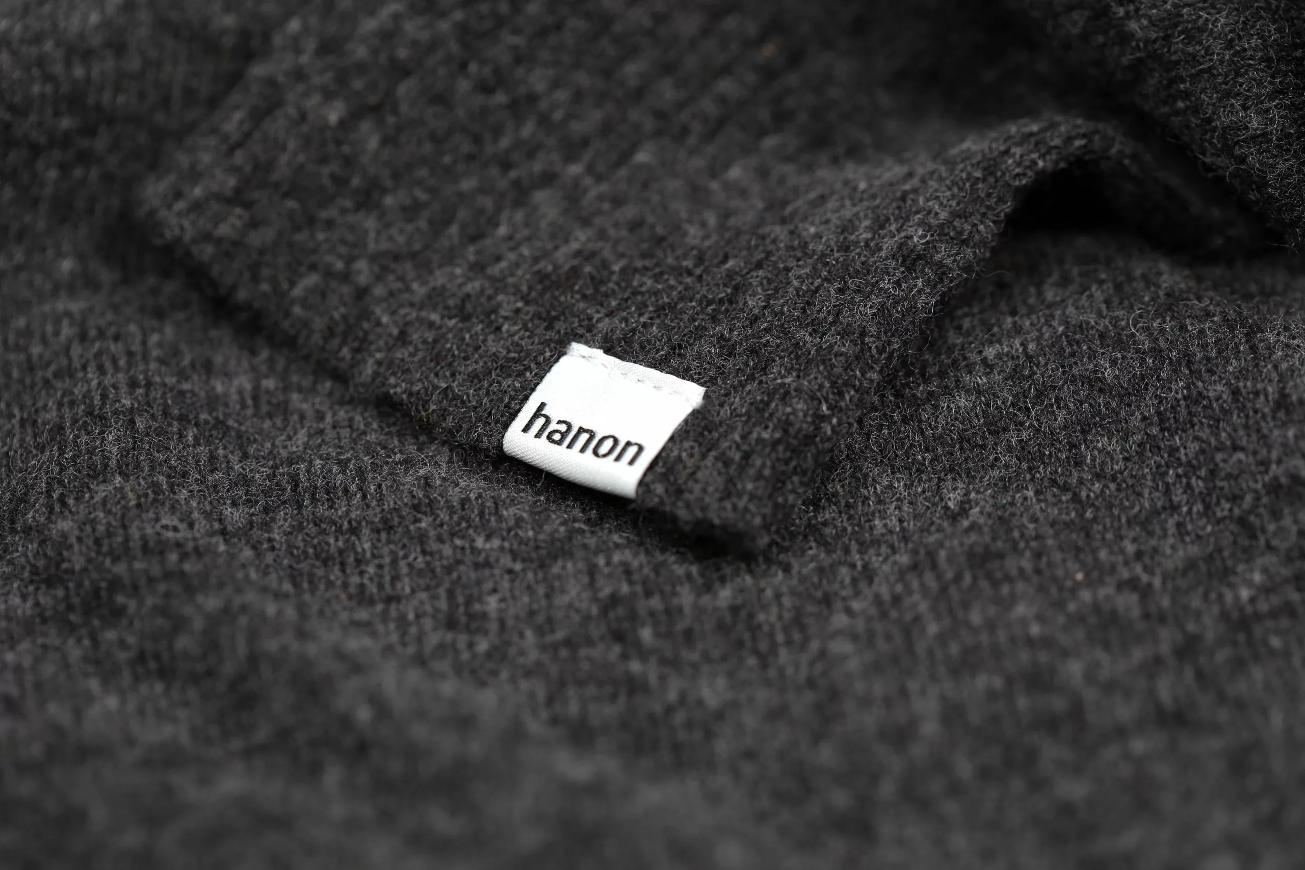 The HANON Classic Wool Knit in “Dark Grey Melange” is made in Portugal from soft Italian wool featuring an embroidered chest flame logo, ribbed neck, sleeves and hemline. A woven HANON clip label on the sleeve signs things off.