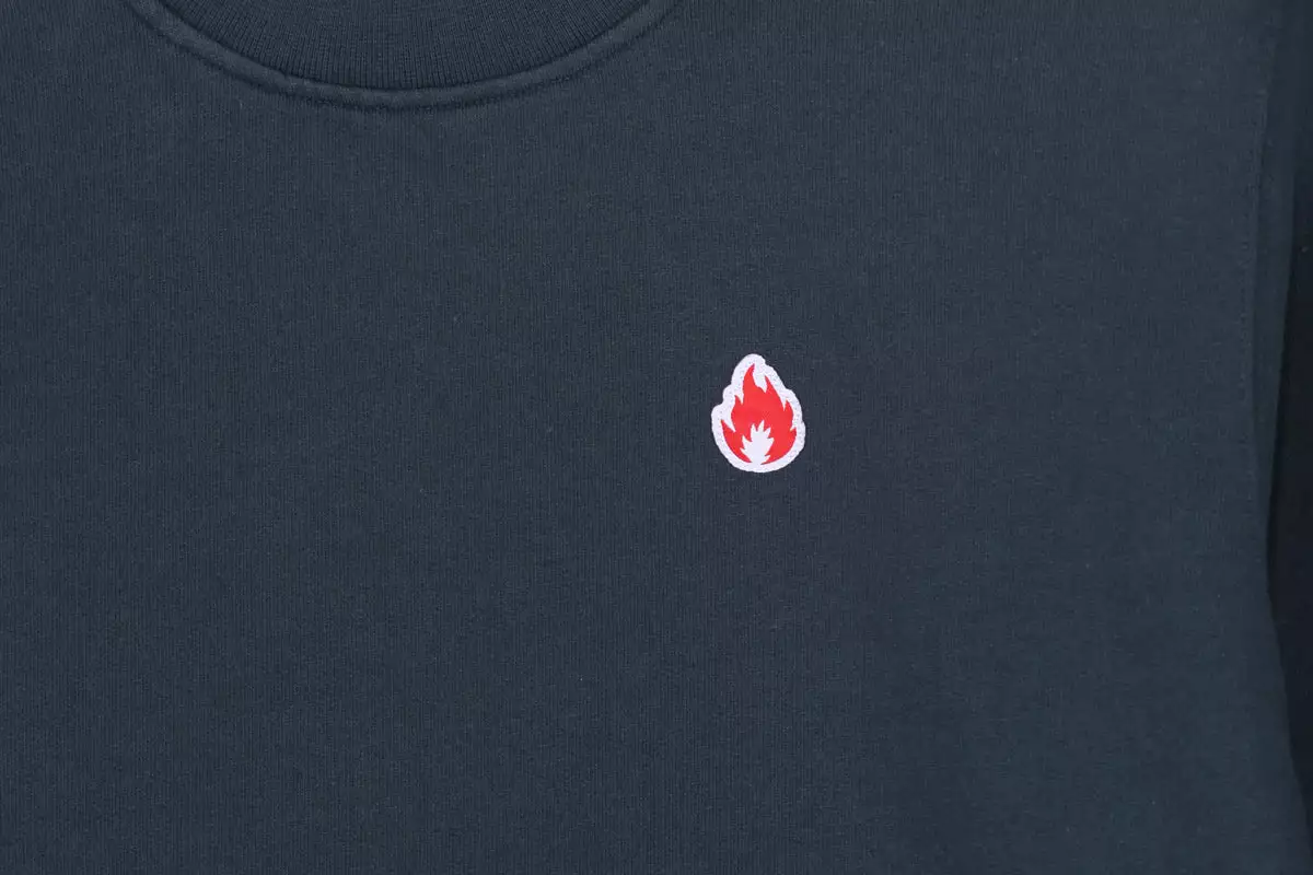 Crafted in Portugal from premium 100% brushed cotton, this Crew neck Sweat features Hanon Woven ‘Flame’ chest patch.
