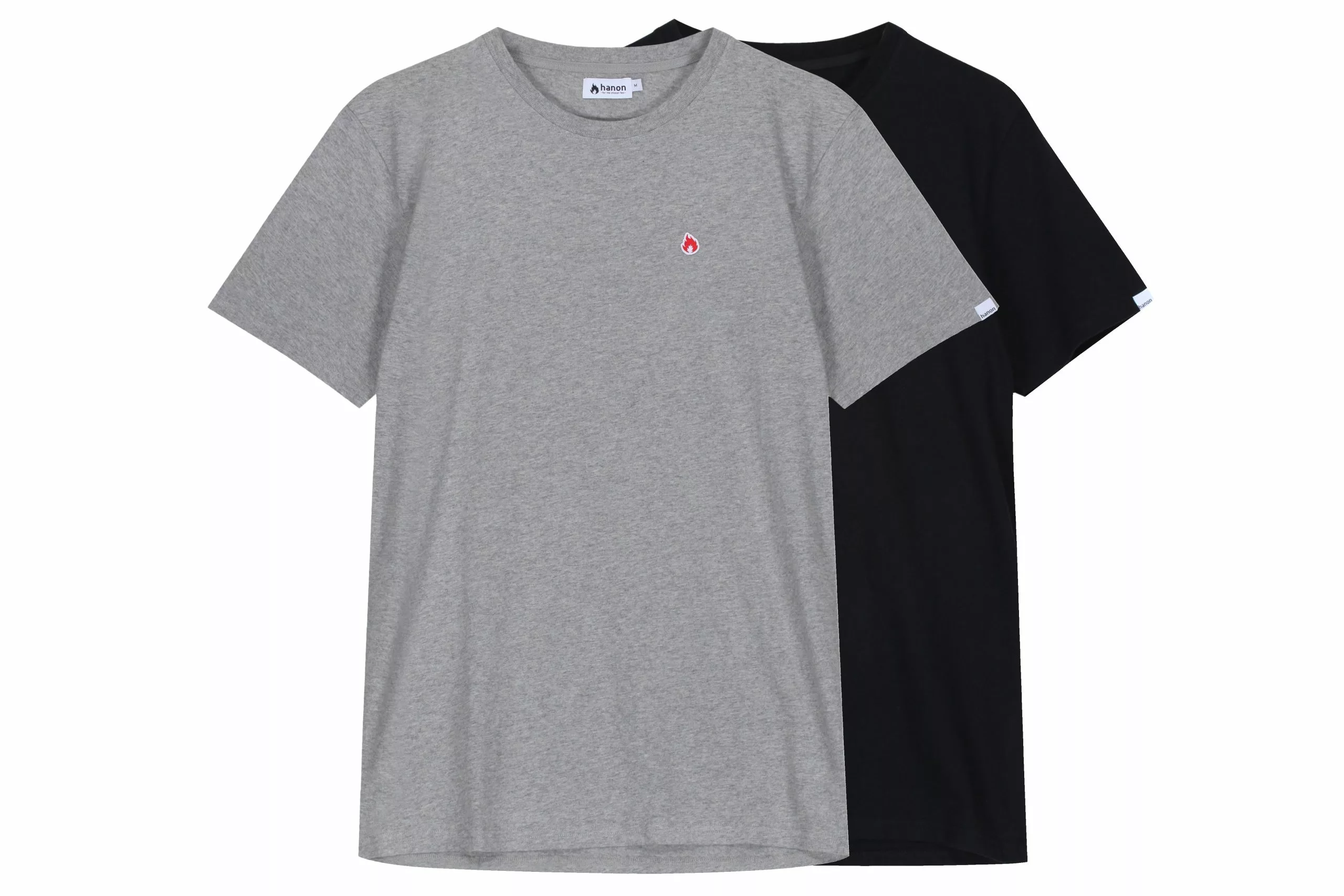 The HANON Flame Badge Tee Double Pack features one Black tee and one Grey Melange tee. Both are crafted in Portugal using 160gr cotton jersey and feature our Flame Badge on the chest.