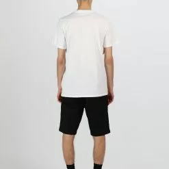 Model is 5’11” tall with a 36″ chest and is wearing a size M in white.