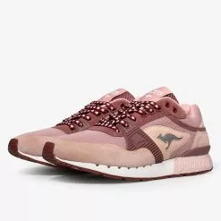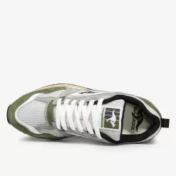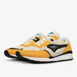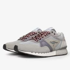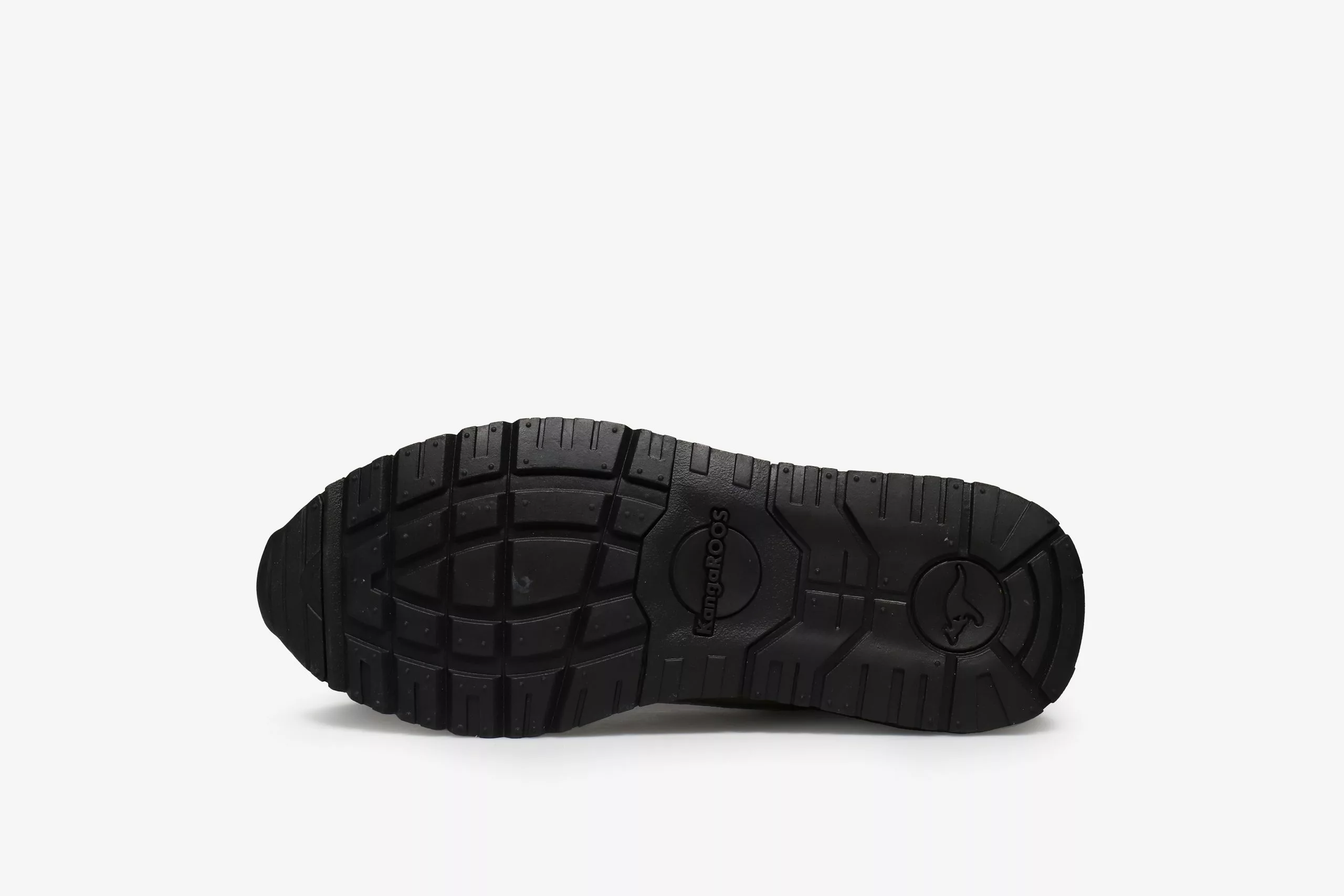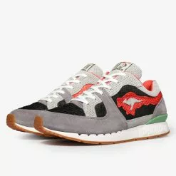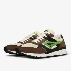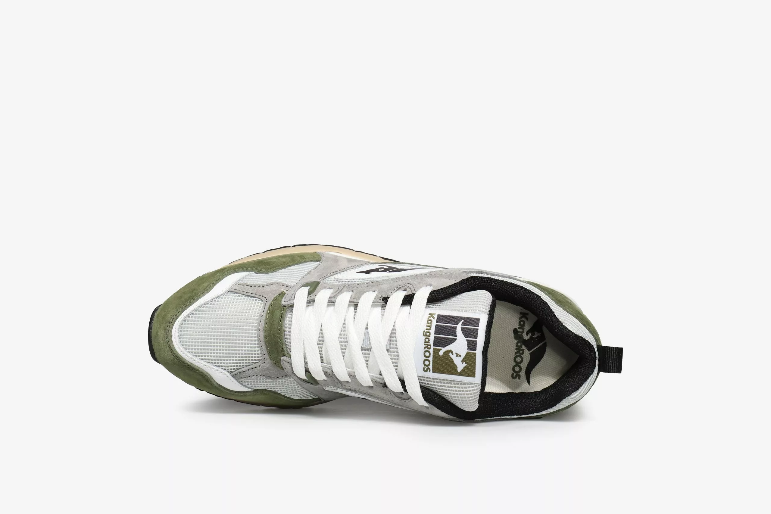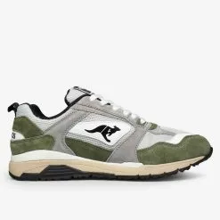 The German footwear aficionados take the EXO model up a gear with their Ultimate rendition. A mesh upper is supported by suede and leather overlays and this pair’s olive and grey colourway is applied seamlessly to the mixed material upper for maximum affect. The KangaROOS logo adorns the lateral and medial side of the shoe, with a typographic logo printed on the heel. The foam midsole has a beige tint that offsets the colour palate, with a black rubber outsole wrapping around it.