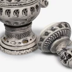 World famous for his intricate Tattoo designs, Dr. Woo collaborates with Neighborhood applying his artwork to a range of garments and homeware. This incense chamber is as intricate as it gets with the ceramic outer covered head to toe in Dr. Woo’s fine line deigns.
