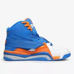 Patrick Ewing Athletics honour the late Anthony Mason with this NY Knicks inspired Concept. The team’s colours flood the leather upper with perforation and TPU accents providing a subtle contrast of textures. The Concept’s wrap around strap features Mason’s player number embroidered at the front with further embroidery and his name printed at the back. Padding in the tongue/upper hugs your foot up top whilst the full length EVA midsole takes care of underfoot comfort.