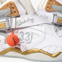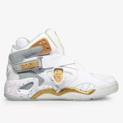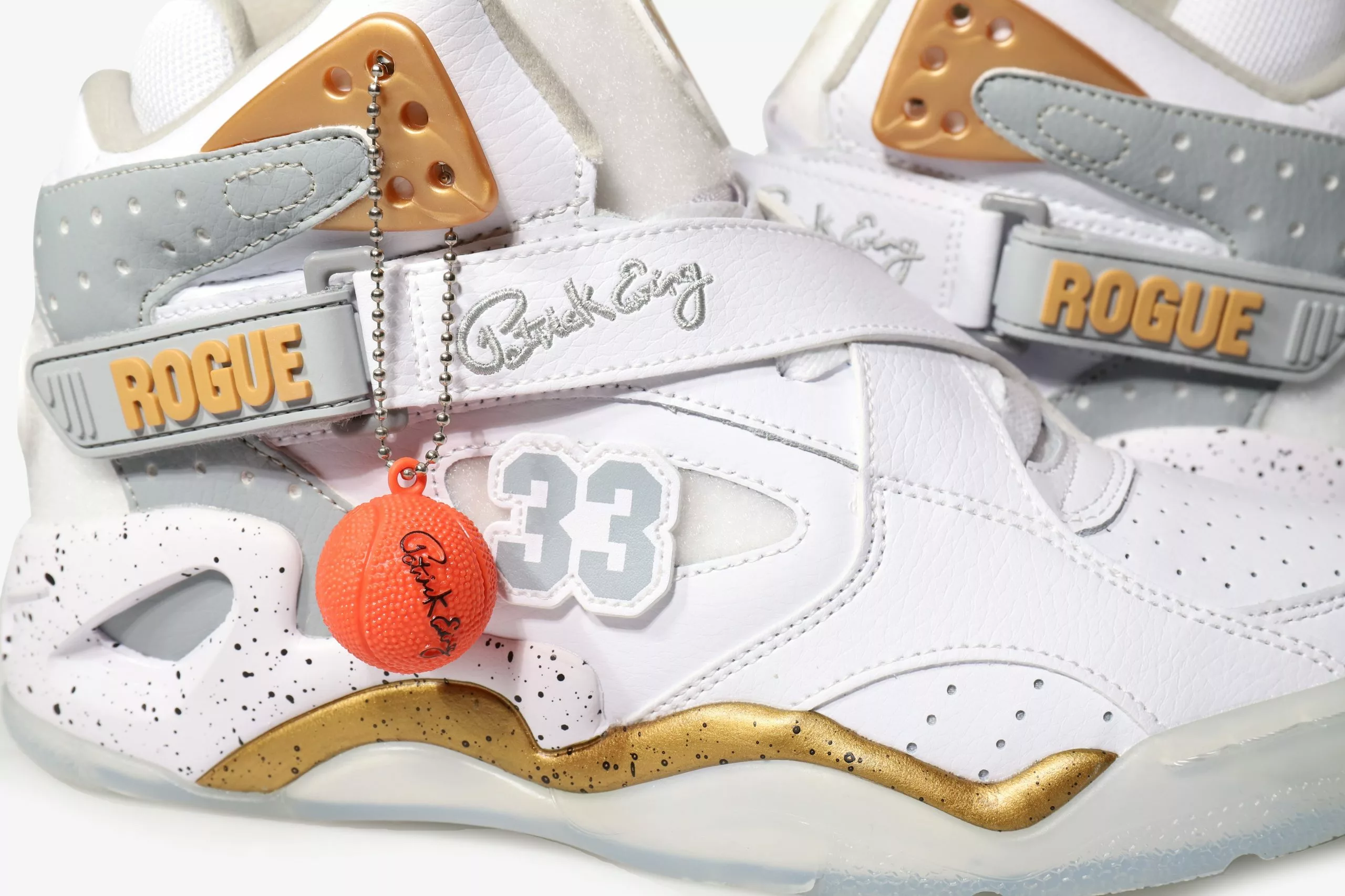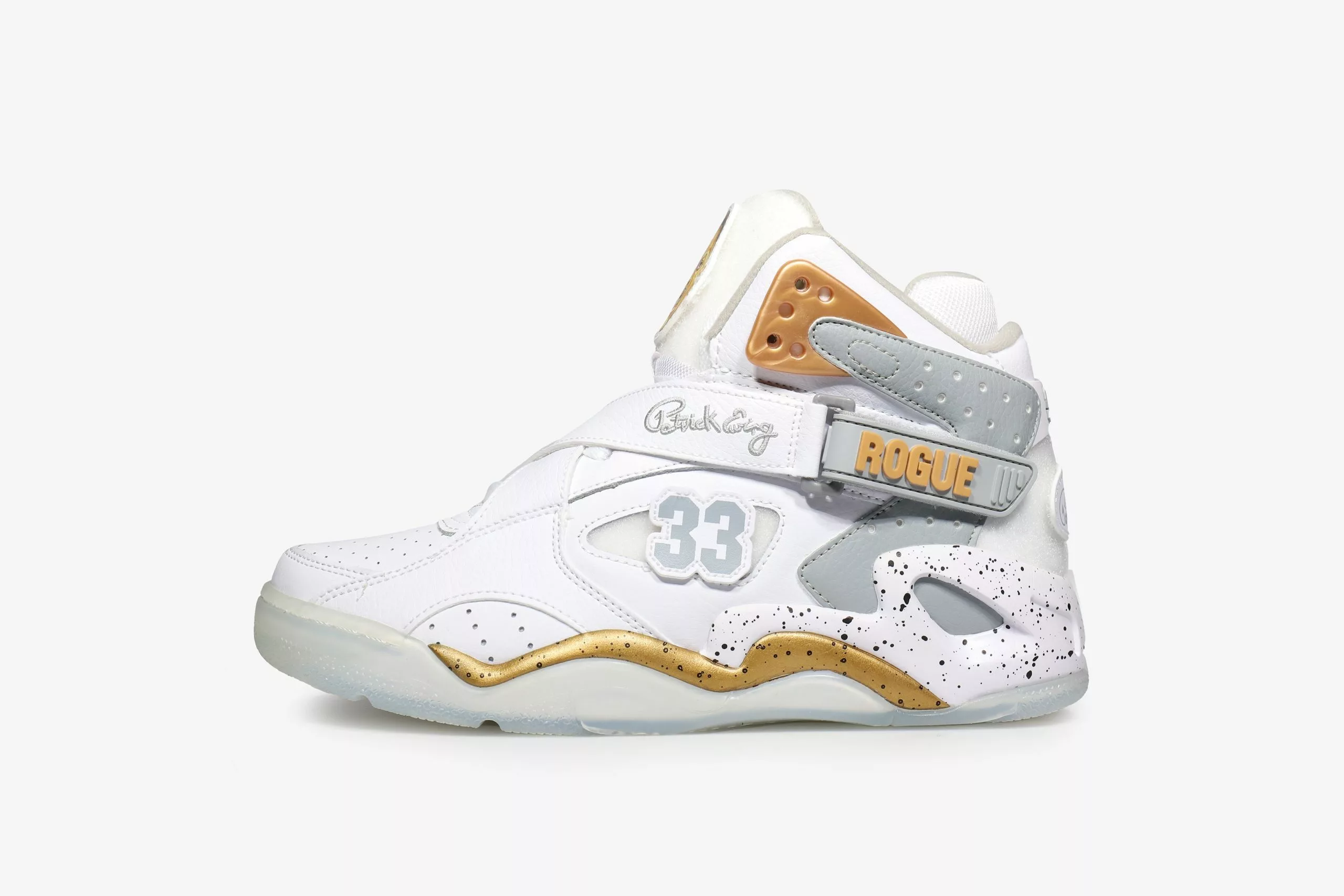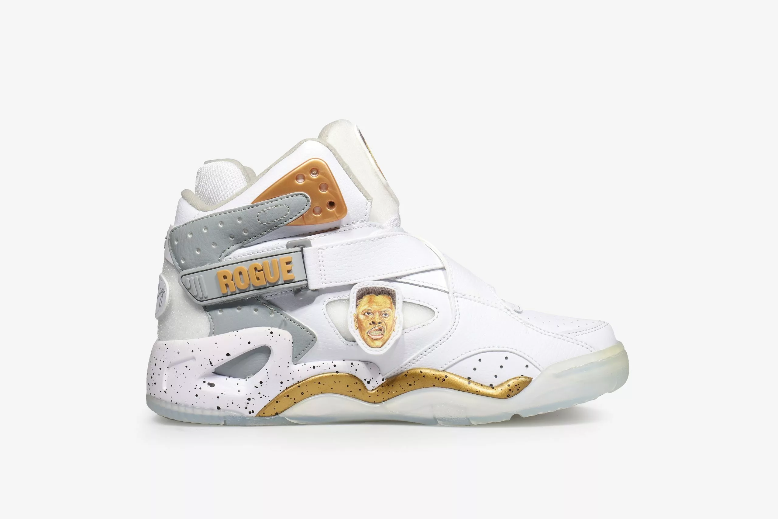 Back by popular demand, the Rouge was reintroduced to mark the brands return to the market. Keeping the foot secure in a unique forefoot strap, accompanied by a cushioned EVA midsole for comfort. Patrick Ewing taps into Laurens J Drawings’ creativity for a velcro edition of Ewing’s comeback king. Various graphic elements can be moved or removed on the velcro overlays on the upper, including an exclusive Patrick Ewing portrait courtesy of Lauren’s canvas.Â