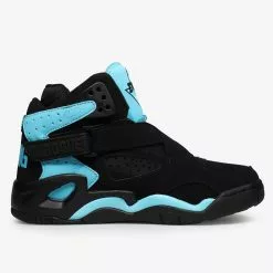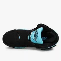 Back by popular demand, the Rouge was reintroduced to mark the brands return to the market. Keeping the foot secure in a unique forefoot strap, accompanied by a cushioned EVA midsole for comfort. This pair boasts lush suede overlays in a deep black, making the cyan blue accents stand out.Â