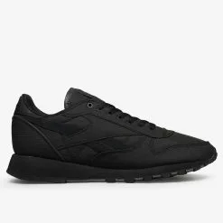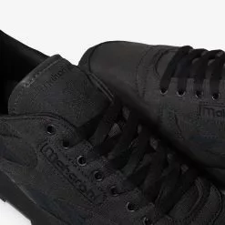 Maharishi continues its collaborative journey with Reebok this time working with the Classic Leather model opting for a black on black colourway that lets the materials do the talking. A durable ripstop covers the entire upper with soft suede side stripes providing an understated contrast of texture. Reebok branding on the lateral side window is reworked with Maharishi branding in the iconic Reebok typeface. Further collaborative branding can be found at the woven tongue label and printed on the insole.Â