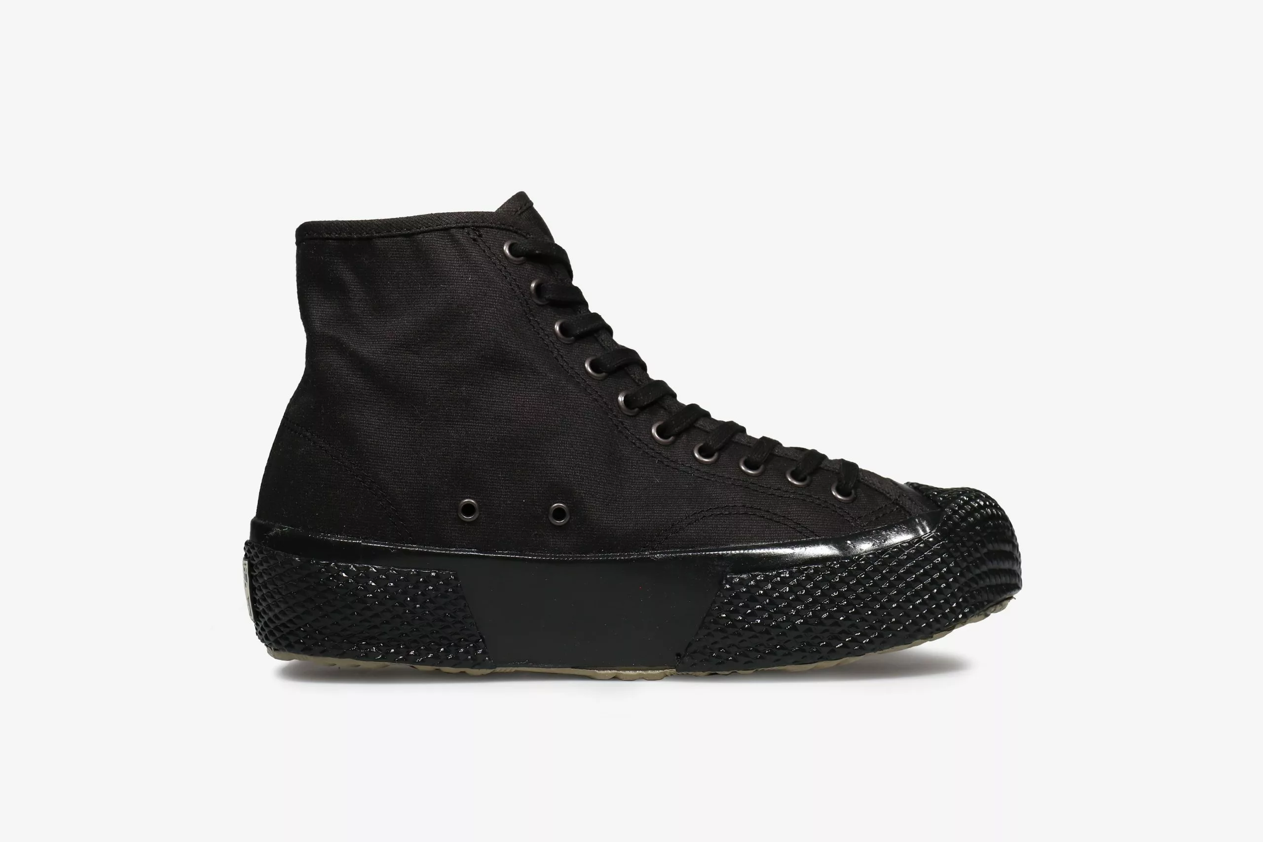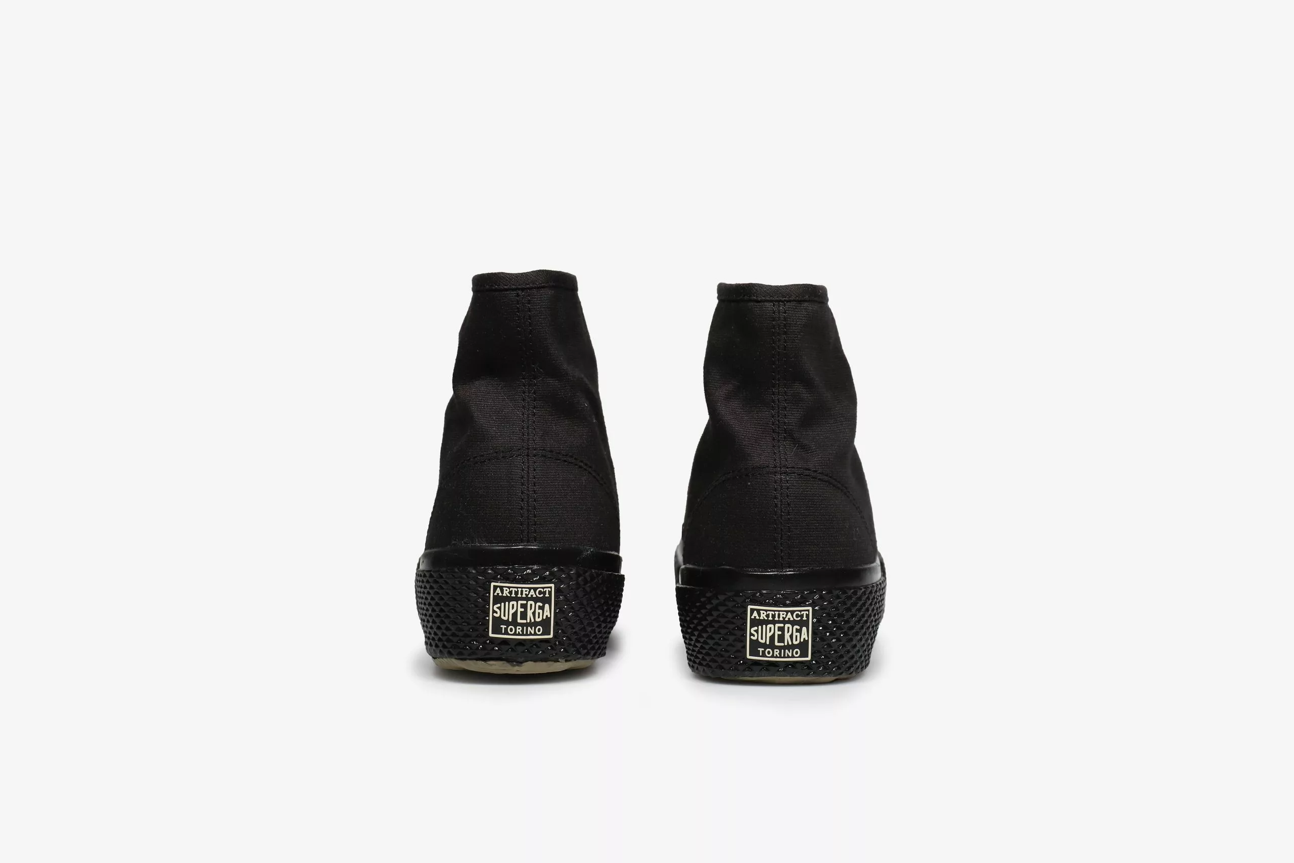 Over a century old, Superga continue to produce high quality footwear that is as versatile as it is stylish. Vulcanised sole units & premium upper materials are just some of the ingredients to their successful design formula. This pair of blacked out high-tops come in a reinforced cord cotton weave upper that is made to stand the test of time, paired with a blacked out vulcanised sole unit that reinforces the ruggedness of the shoe. Tonal metal eyelets add an extra hardwearing element to the shoe, making them equipped for heavy use.