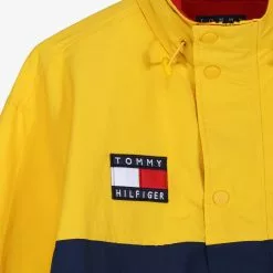 Tommy Hilfiger and Patta are back at it again, this time with a capsule collection focussed on 90’s streetwear and the golden age of New York Hip-Hop. Baggy jeans and bold branding with nods to sportswear that can be found throughout the collection for a truly retro outcome. The Regatta Jacket comes in a classic regatta jacket fit. The body is fabricated from 100% nylon with a mesh lining. The jacket features a packable hood, elastic cuffs and hems, two side pockets with button closure and a zipper with additional button closure. Coming in a two colour construction with navy and yellow. The front and back of the regatta jacket features a classic Tommy embroidery. The sleeve on the right hand side is adorned with Patta x Tommy branding.