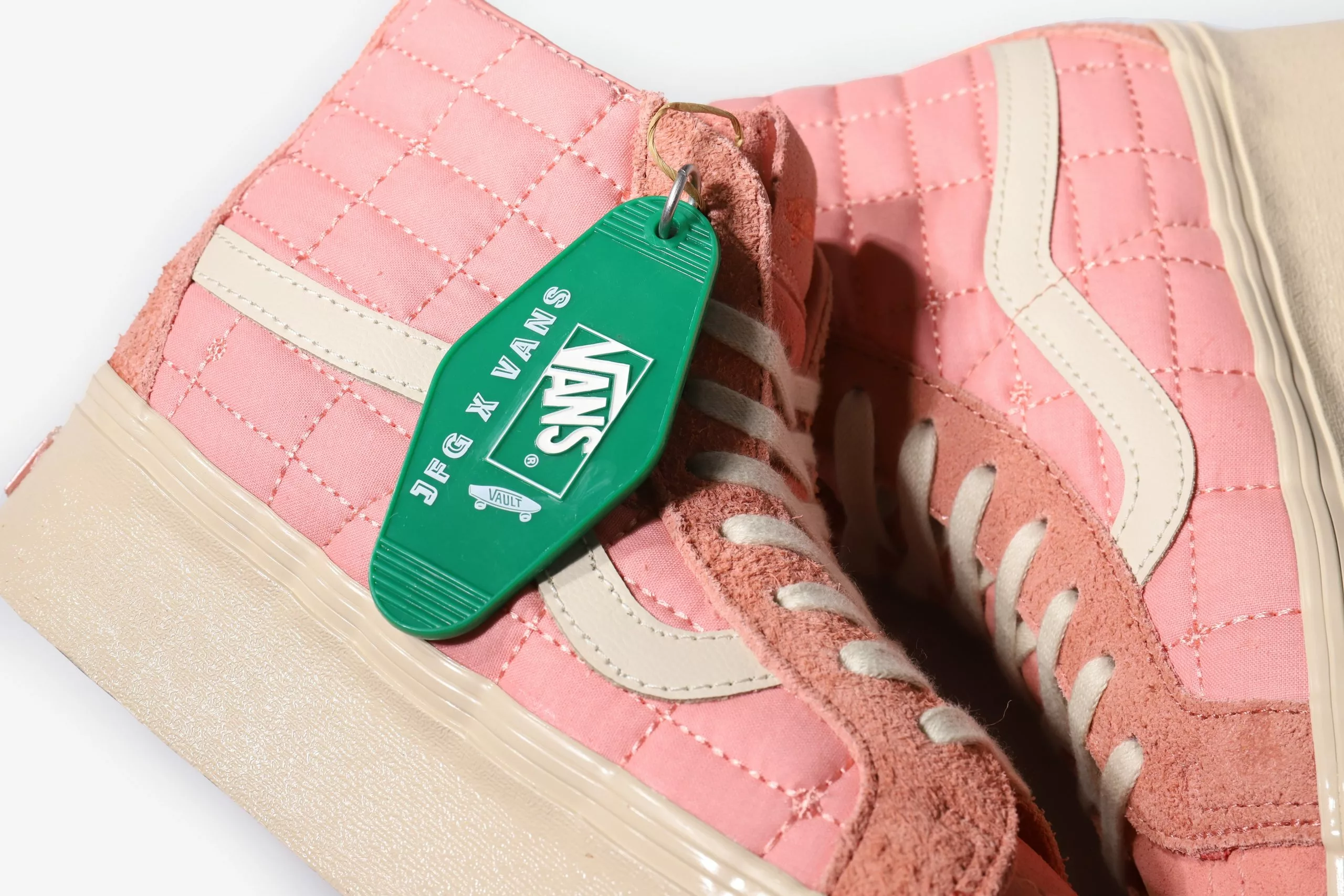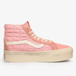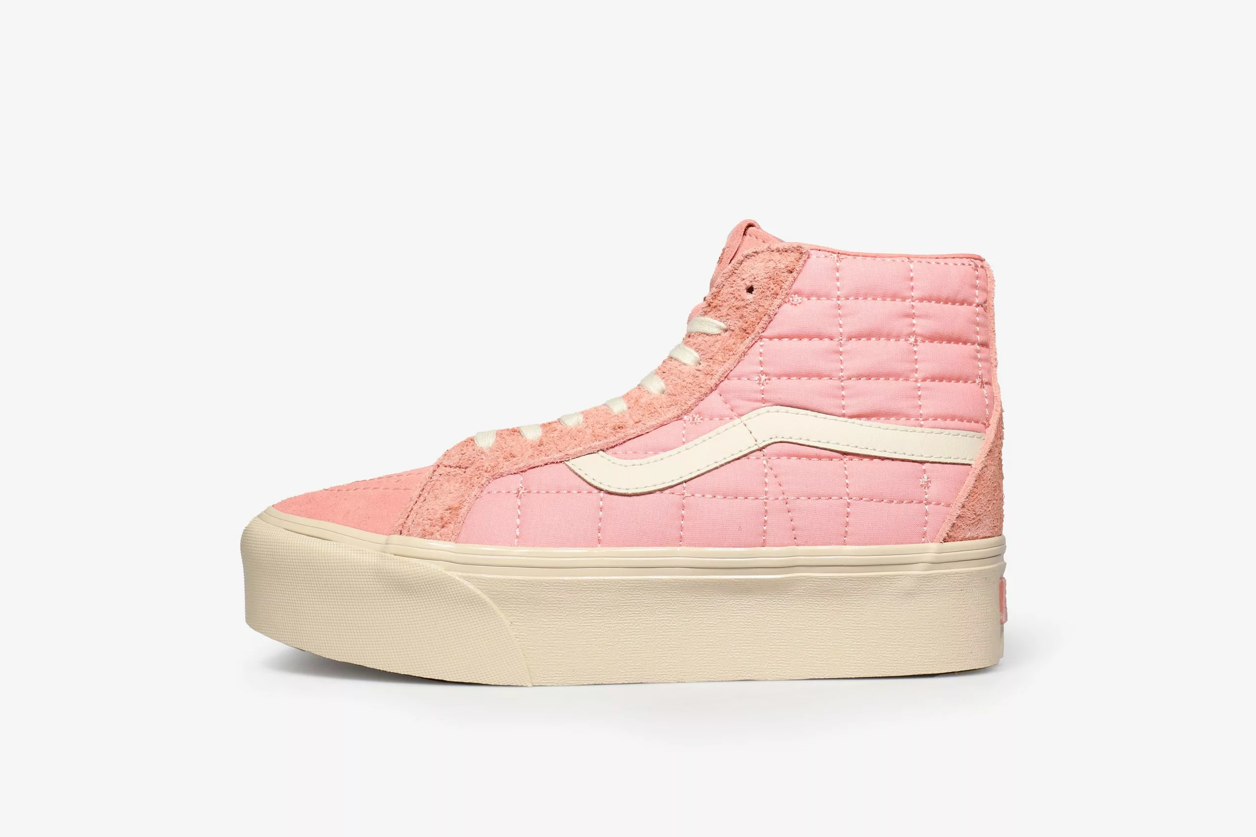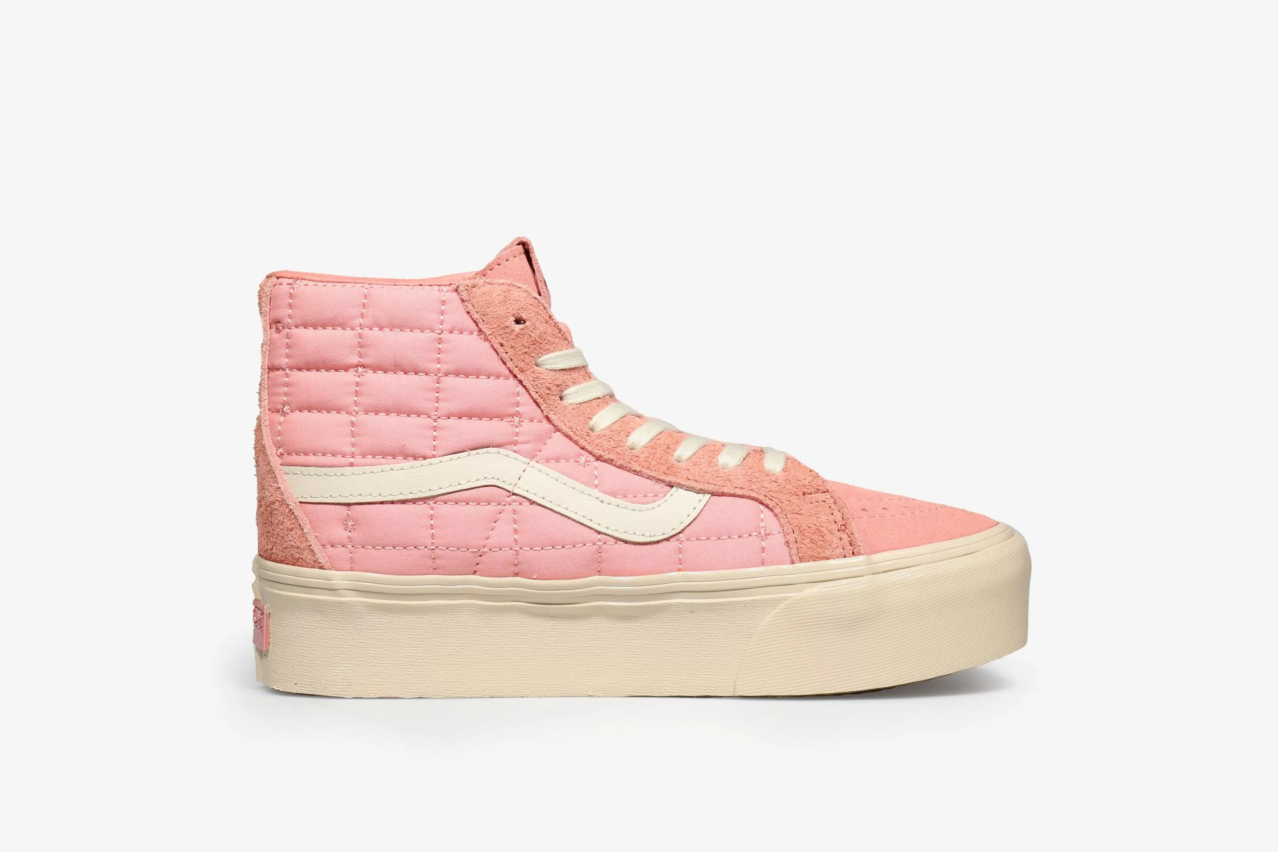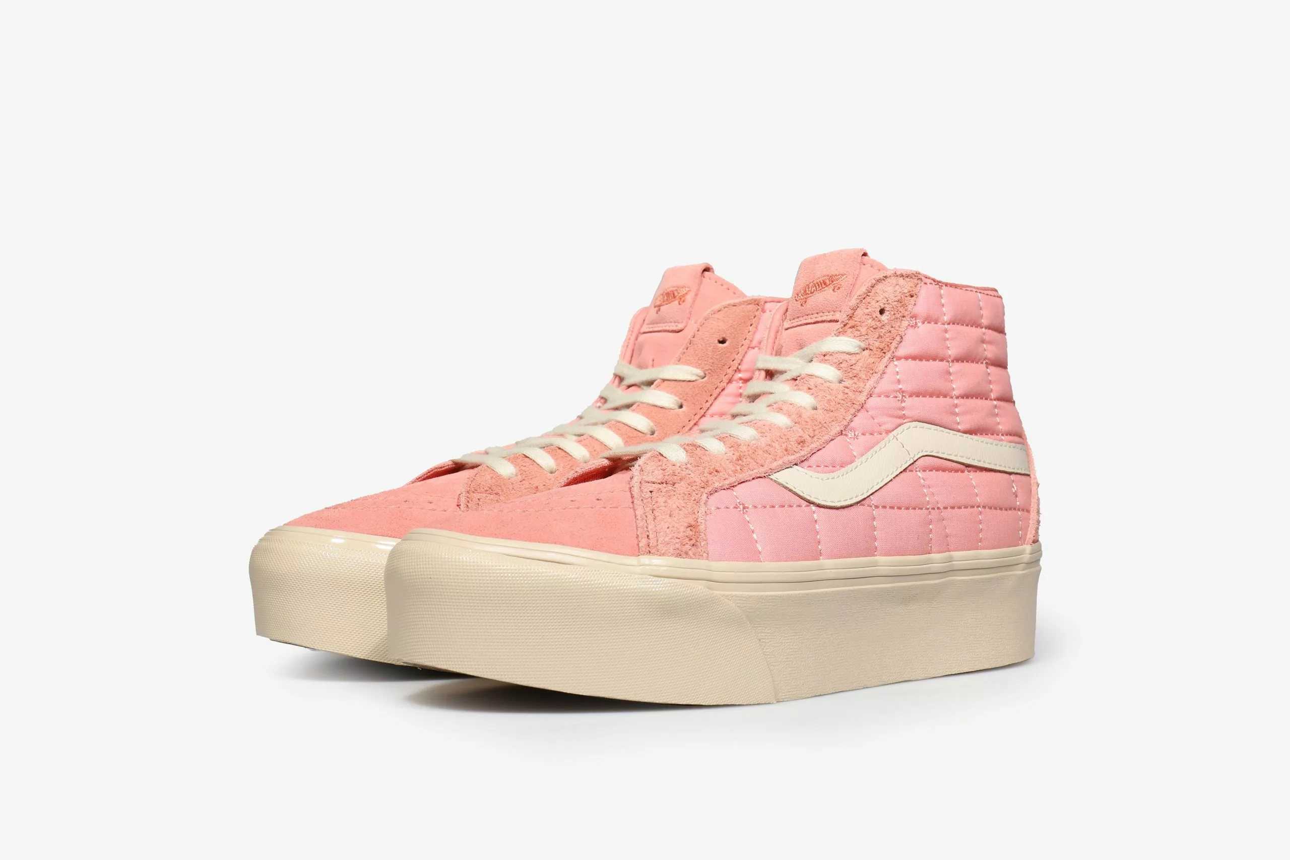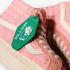 The Sk8-Hi gets revamped with a quilted nylon upper, supported by suede overlays, all in a striking coral colour that looks and feels premium. All the materials and components are within a tight tonal range, slight variations give it depth and dimension while keeping consistent in hue. A leather Jazz stripe gives the shoe that signature Vans touch, along with a tonal heel scab, both important components to the classic Sk8-Hi silhouette. A custom box, hangtag and lace options are the finishing touches to this silky smooth collaboration.