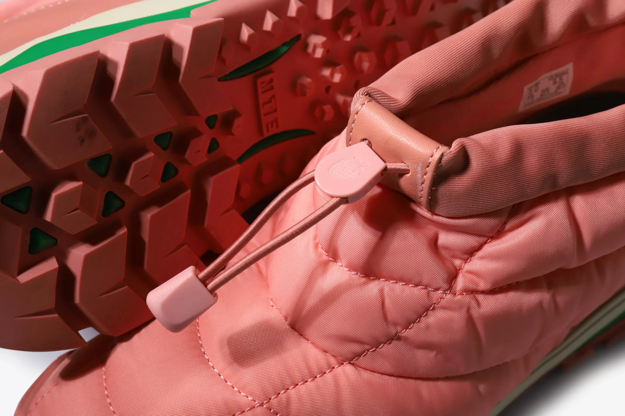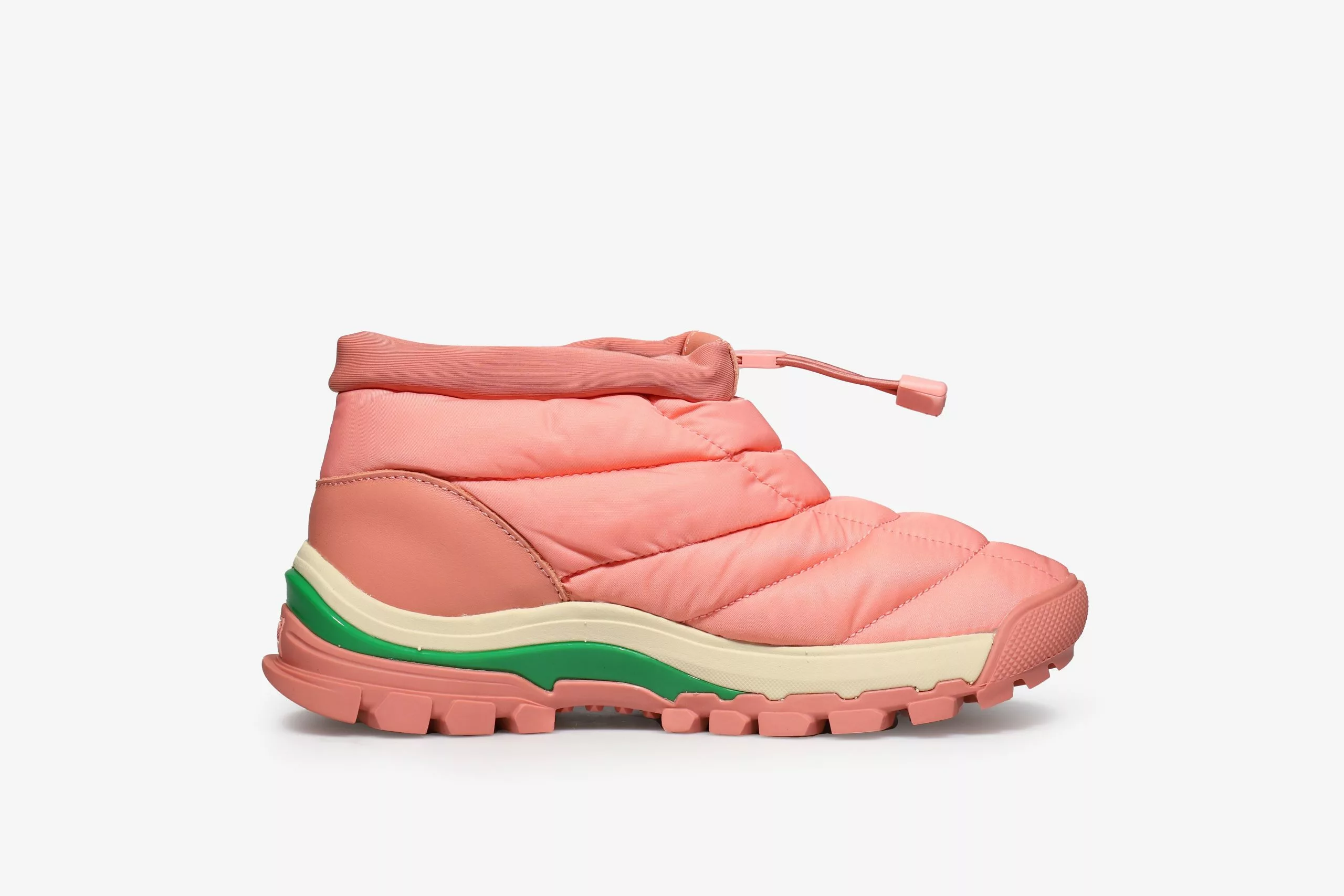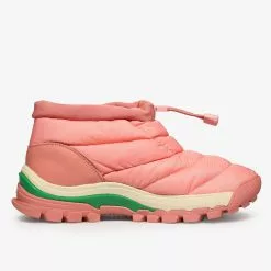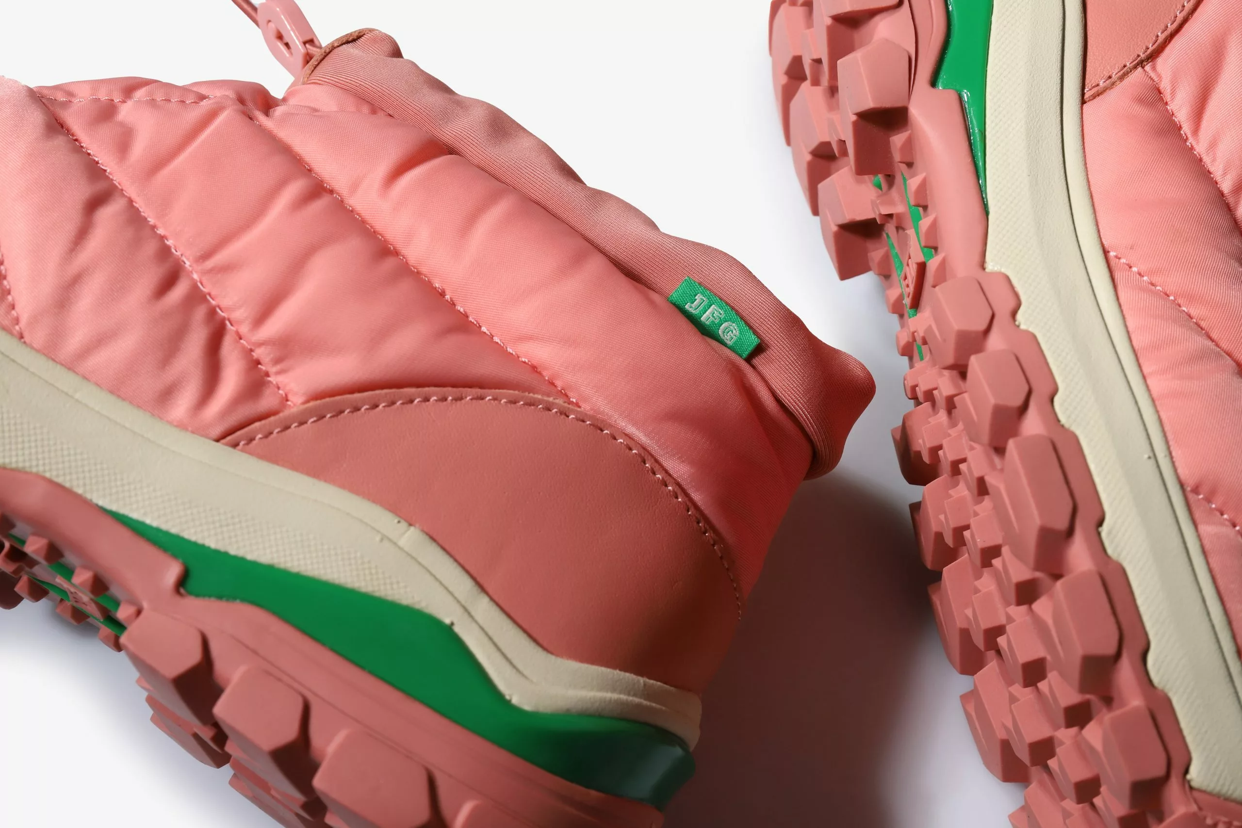 A winter silhouette brought back from the depths of the Vans Vault, boasting an insulated nylon quilt upper and heavy duty sole unit for tough terrain. An elastic fastening around the ankle provides insulation and easy access. The coral hues are a unique take on this particular shoe, breathing new life into this archive model. A pop of green in the midsole unit provides contrast to the predominantly monotone outfit.Â